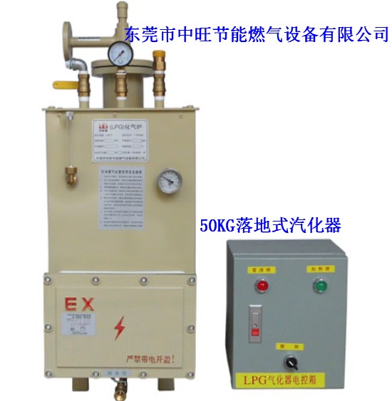 中旺LPG防爆气化器其实又叫液化石油气化炉由带保温的方筒体、蛇形盘管、电加热器、气液相连接管、安全阀及仪表控制件组成。蛇形盘管采用无缝钢管材料。液态液化石油气沿液相入口进入LPG液化气气化器,从上而下沿其内部盘管流动,吸收管外热水传递的热量而气化,气态的液化石油气由中间的集气盘管上升,经气相管调压后输出,液化石油气残液通过集气管底部的排污管排出。在筒体上按装有测温元件和浮球控制器,以控制水温和液位。当水温过低或水位超过低限时,液化气入口控制阀、电源开关将自动关闭。中旺气化器安全可靠、节省液化石油气、环保、低耗高效使用方便,宾馆、酒店、企事业单位、食堂、厨房及使用燃气场所的产品。
