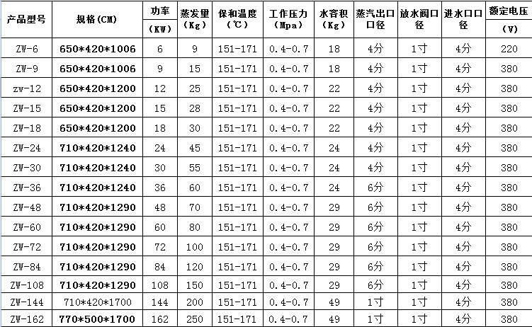 中旺星 电蒸汽发生器详细参数: