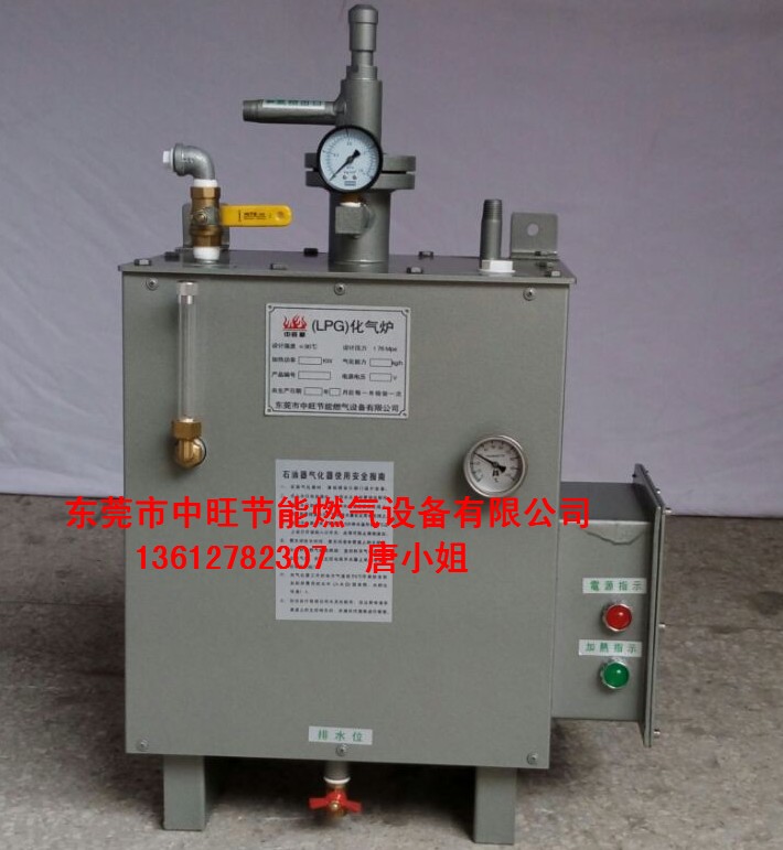 液化气(丙烷)汽化器的工作原理是,利用钢瓶充气后的内压作用和虹吸原理,将钢瓶底部的残液和钢瓶里的气相按合理比例,引射到灶具吸垫气化燃烧,使液化气中的残液得到充分利用,从而达到钢瓶残液充分燃烧,节约能源的作用。安装汽化器能有效解决因用气量大,气温过低造成瓶表面结霜、结冰、火力及压力不稳定,安装汽化炉可有效解决钢瓶余气无法用完,节能经济效益十分可观,一次性投资终身受益,无噪音该设备安装在使用场所工作状态下无噪声,安全性能好。