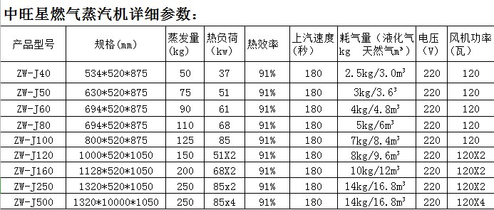 “中旺星”牌系列节能燃气蒸汽发生器,是一款即热即用设备,以加热快、蒸汽量大、热效高而深受用户欢迎,它是东莞市中旺节能燃气设备有限公司专业技术人员精心研发的高效、节能、环保产品。本产品采用全不锈钢制造,脉冲点火,款式大方得体,维护方便。自动供水、自动除垢.防干烧。具有操作简单,燃烧性能好,热效率高,产汽速度快,使用噪音小,废汽排放少等优点。它除广泛应用于厨房(海鲜蒸柜、蒸饭柜、肠粉炉、消毒柜)蒸汽用设备外,还可用于桑拿浴室、纺织、服装、工业,食品制造等需要蒸汽的行业。与传统产品相比,热效更高更环保、更节能、更安全。