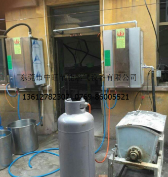 中旺商用燃气节能蒸汽发生器,整机由燃气电磁阀(可人工调节控制火力大小)、自然引风火排燃烧器、电子脉冲点火器、304不锈钢加厚火管换热器,水位控制箱、强排抽风机、智能控制总成、等要件构成。运用新燃烧换热技术设计制造,一键操作,智能控制,使用液化石油气,天然气,人工煤气等气体燃料。快速的产生大量连续蒸汽。设备自动运行,可单机或多机组合使用,是代替传统锅炉和传统加热设备节能改造的佳产品。
