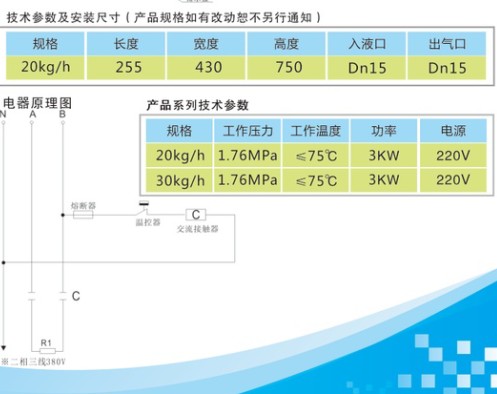 中旺方型挂壁式气化炉,气化能量从30KG-50KG两种规格,它轻巧,工作环境面积小,操作简单,安装容易,适用于小型集中用气单位。电加热式气化器是采用电加热水瞬时通过盘管的液化石油气进行强制气化的装置(设备)然后经过设备本身的气液分离器脱区重组水分后输入管网。
